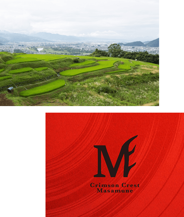 The Crimson Crest Masamune series expresses depth and refinement shaped by centuries of history. The Crismson Crest Masamune pays homage to the iconic crimson armor of a famous warrior named Yukimura Sanada from the brewer’s region. The letter “M” stands for Masamune, reflecting refined artisanal craftsmanship. Its design incorporates deer antlers, a tribute to Yukimura’s legendary helmet and the spirit of courage it represents. With every bottle in the Warrior lineup (Bold, Elite and Loyal Warrior), you embark on a journey through Nagano’s landscapes, heritage, and meticulous craft of authentic sake.